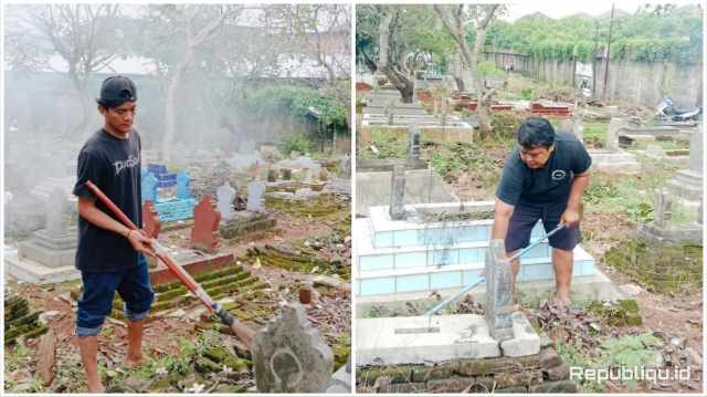 Warga yang hadir tampak antusias mengikuti kegiatan, mulai dari membersihkan tumbuhan liar, memungut sampah di sepanjang jalan menuju TPU, hingga merapihkan fasilitas umum di sekitar area pemakaman.
